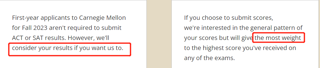 也就是说如果你有好的标化成绩提交了,CMU会对你的最高分给予最高权重。