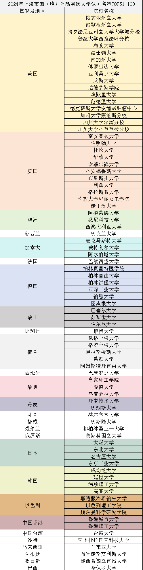 此前,上海人社局在留学生落户系统内,更新了落户激励条件中的全球前100高校名单!