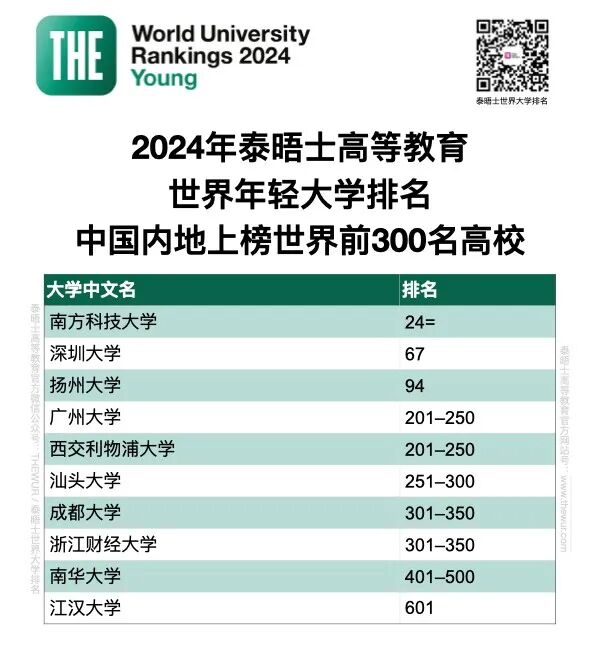 就在5月14日下午一点,作为四大权威世界大学排名的泰晤士高等教育(THE),正式发布了2024年度世界年轻大学最佳榜单。