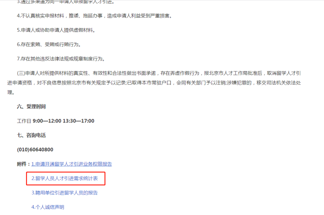 以上要求来自“人才引进需求统计表”| 图源:海外学人中心官网