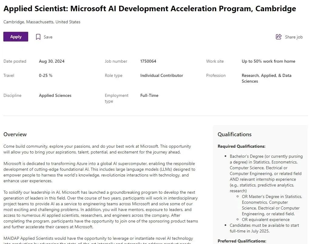 ✅微软招聘AI部门全职&实习,PhD、本科、研究生均可投