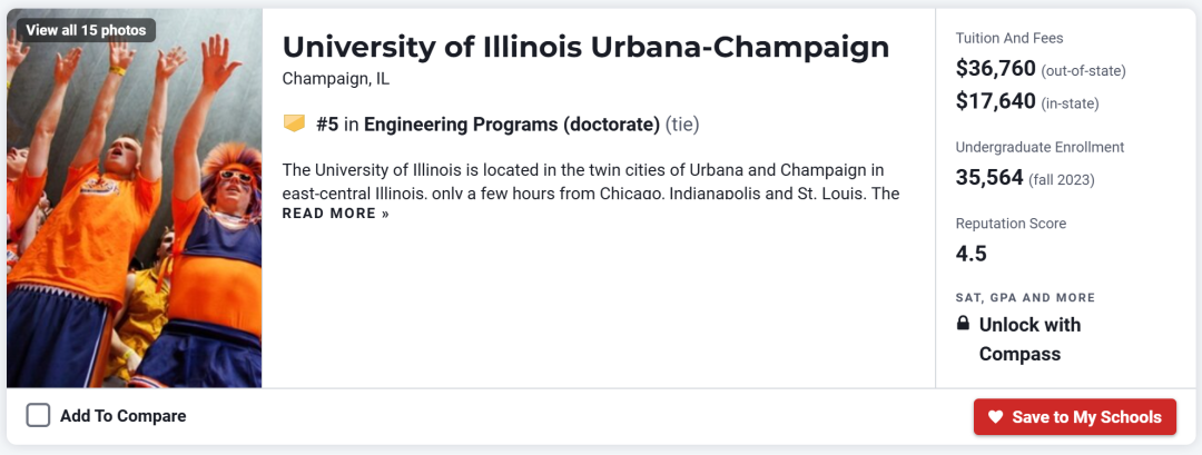 UIUC工科专业在全球享有盛誉,几乎所有专业均位列全美前十。它的校友参与创建了特斯拉、Youtube、Paypal、AMD、Yelp等世界知名公司和IT产品,以及JavaScript、Swift等编程语言。