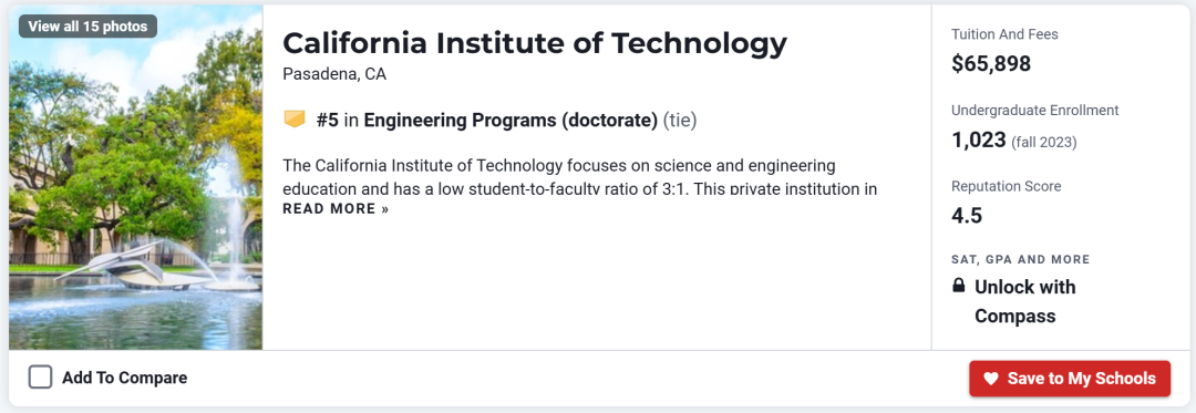 麻省理工学院(MIT)斩获第一并不让人出乎意料。作为美国老牌工科强校,MIT以其优秀的工程与技术而著名。学校还拥有麻省理工人工智能实验室、林肯实验室,为研究型人才提供了丰富的科研资源。