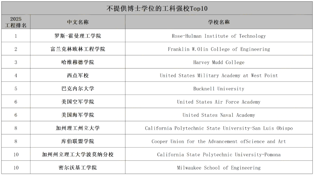 2025不提供博士学位的工科大学Top10