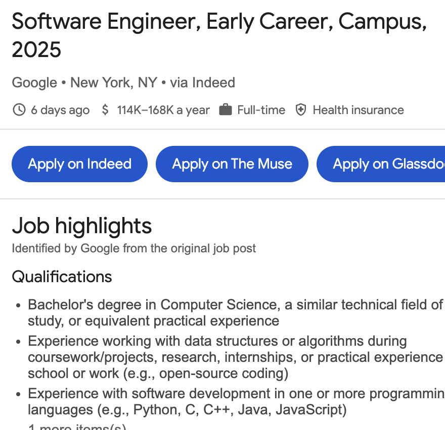 谷歌最新放出了Early Career, Campus, 2025——Software Engineer岗位!