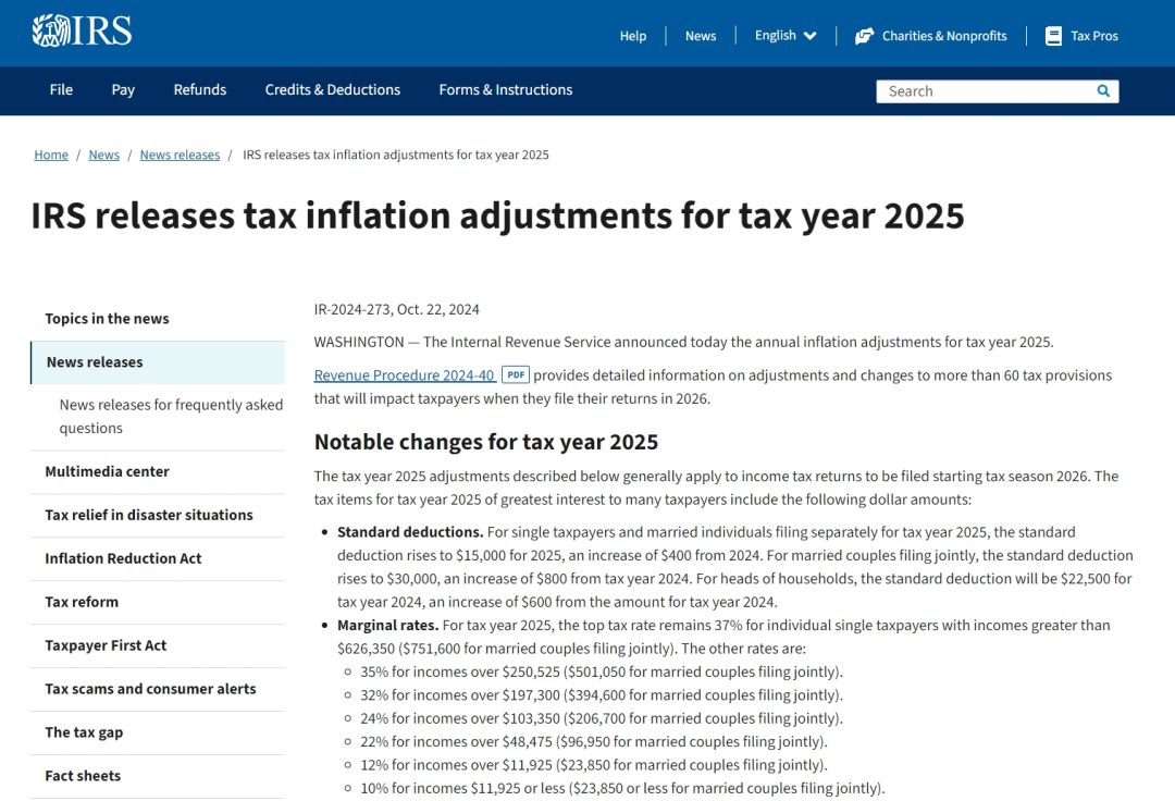 https://www.irs.gov/newsroom/irs-releases-tax-inflation-adjustments-for-tax-year-2025