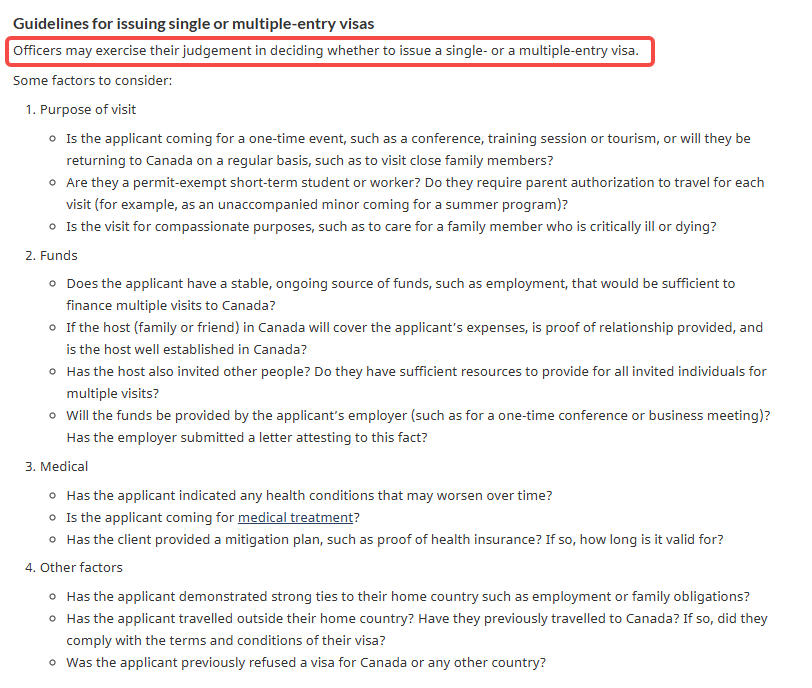 根据官网更新后的信息,对于签证官如何判断是否签发单次还是多次入境签证,需要考虑的4大因素有这些: