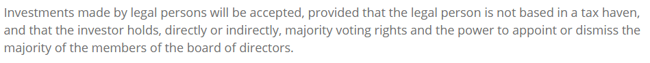 值得一提的是,西班牙黄金签证接受法人投资,但前提是该法人实体不位于避税国家,并且投资人直接或间接持有法人多数表决权及董事会成员任免权。
