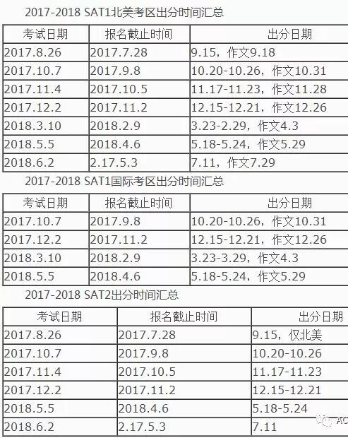 1、2017年10月、11月、12月,2018年3月、5月的SAT考试,阅读(Evidence-Based Reading and Writing)和数学(Math)部分将于考试日之后的两周内出成绩,并且,CB将在你收到这个分数的10天内将成绩递送给大学。