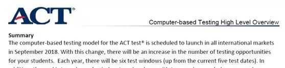 1. ACT考试将于2018年9月在国际市场推行全球机考模式